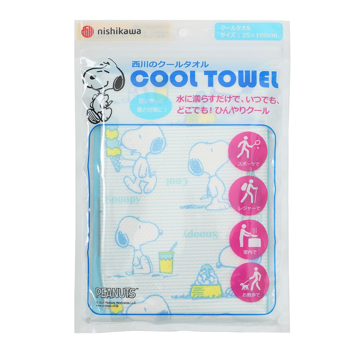 西川 ■スヌーピー クールタオル ひんやり 熱中症対策 アウトドア 抗菌仕様 UVカット機能付 ブルー LT91109097SB