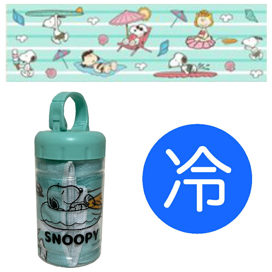 キャラクターひんやりタオル スヌーピー グリーン 接触冷感素材 熱中症対策 持ち運びに便利なボトル入りパッケージ バッグにつけられる 815 夏 グッズ 熱中症 対策 キャンプ 試合 炎天下 冷える 冷感 タオル キャラクター 冷たい スポーツ 手拭い 汗拭き 海 緑 冷たい