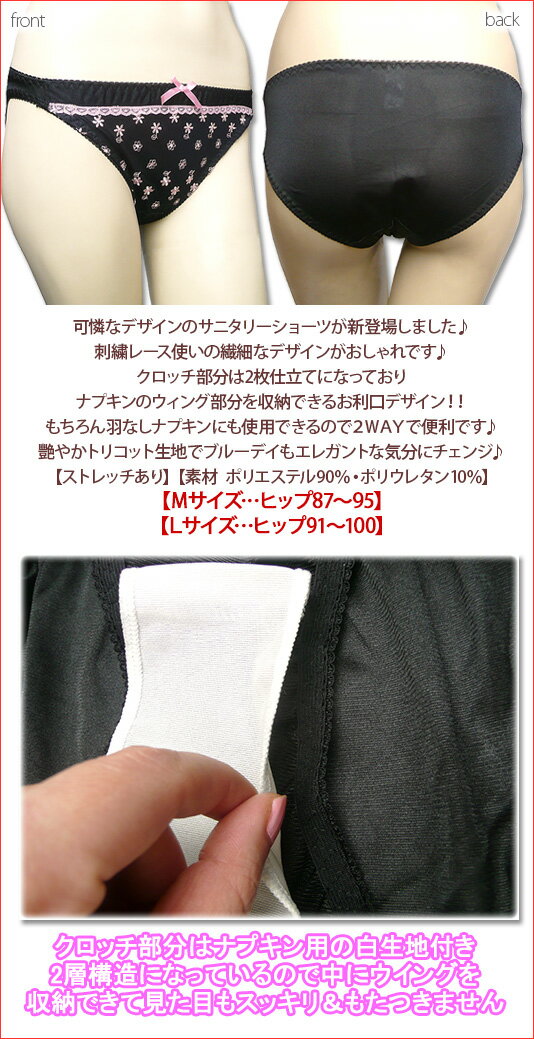 ナプキンの羽部分を収納出来るオシャレな生理用ショーツ♪