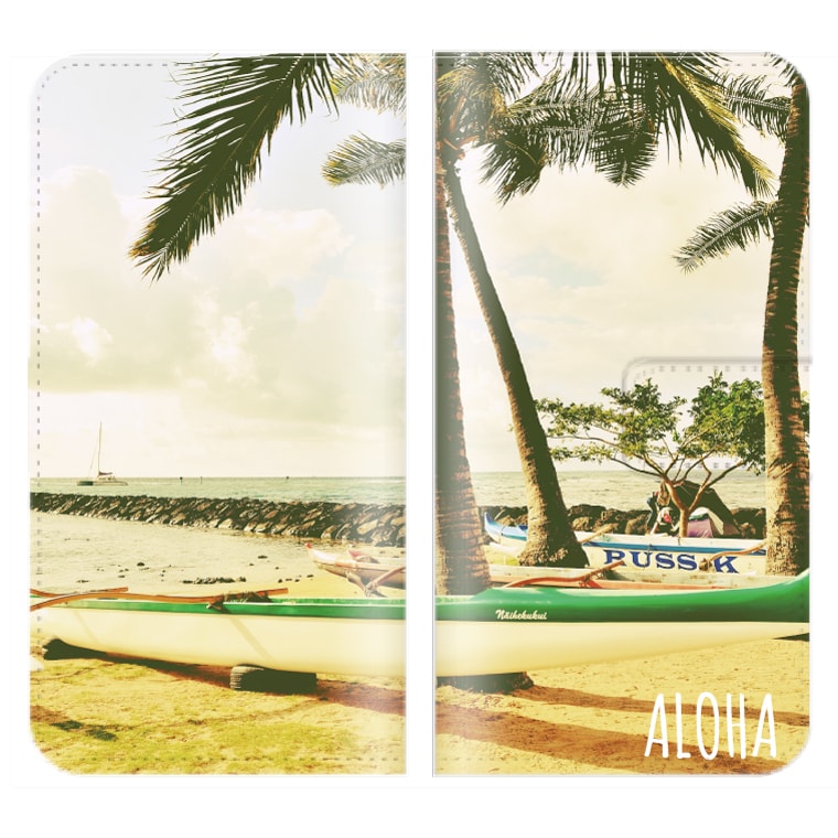 Disney Mobile DM-01J ケース 手帳型 (V) 送料無料 ALOHA デザイン アロハ SUMMER サマー ヤシの木 Palm tree ハワイアン ハワイ Hawai SURF リゾート バカンス 夏 太陽 夕焼け サンセット 景色 風景