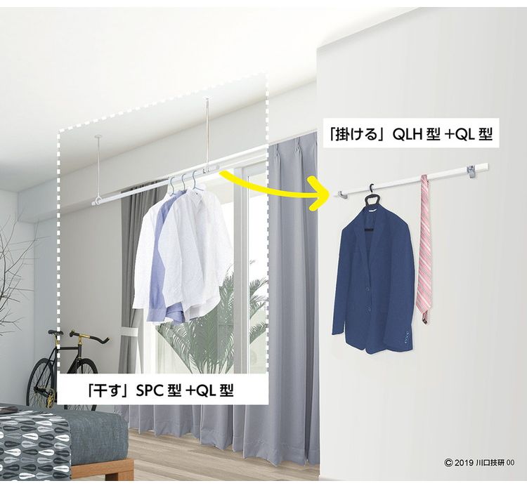 【商品特長】「室内干し」を追求して誕生したSPC型とQL型のセット品に壁面収納専用フックを+しました。