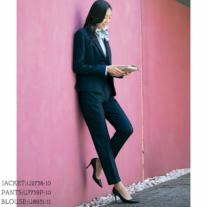 ■発送までの目安 メーカーに在庫が有る場合は、7日前後 ■配送方法 宅配便 【21号・23号】テーパードパンツ U7739P レディース スーツ 無地 ストレッチ 裾ダブル ブラック ネイビー オールシーズン 制服 仕事服 通勤服 入学式 卒業式 入園式 七五三 手洗い ウール混 AS UNILADY(ユニレディ) / ヤギ【5号〜19号】