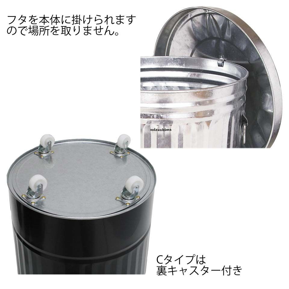 ダストBOX(トタン) 33C シルバー 直径35.5×高さ48.5cm 容量約33L【ブリキ製ボディ ふた付き キャスター付き 業務用分別ゴミ箱 屑入 ダストボックス 屋外使用可 オフィス 給湯室 事務所 病院 キッチン ミヅシマ】