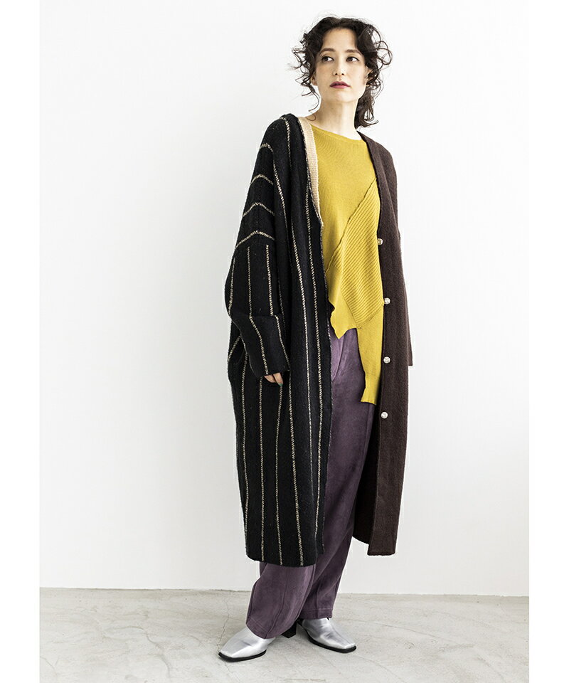 [型番:792010-687K]アウター感覚でラフに羽織りやすいアシンメトリーニットカーディガン。