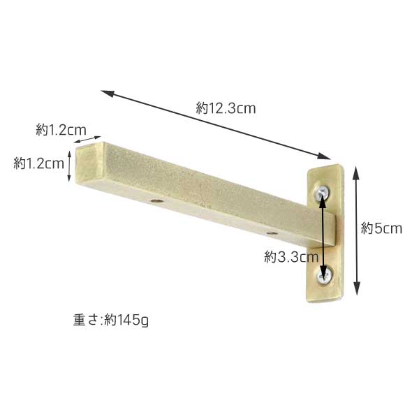 商品情報 サイズ W約1.2cm×H約5cm×D約12.3cmビスピッチ:約3.3cm重さ:約145g 材質 アイアン 色 アンティークゴールド 内容 1個での単品売りです棚を作る際は、*2つ以上必要になります。