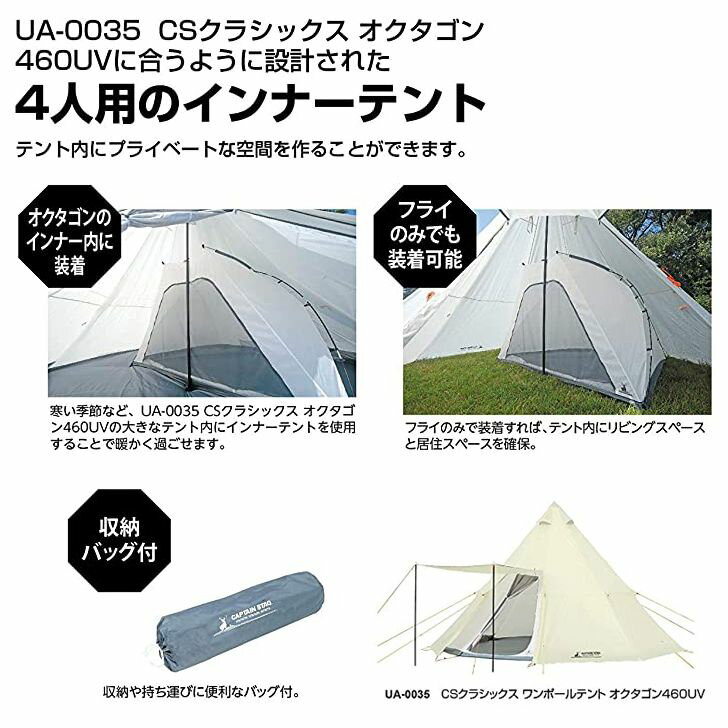 ●CSクラシックスオクタゴン460UV用インナーテント ●テント内に4人用のプライベート空間を作ることができる。