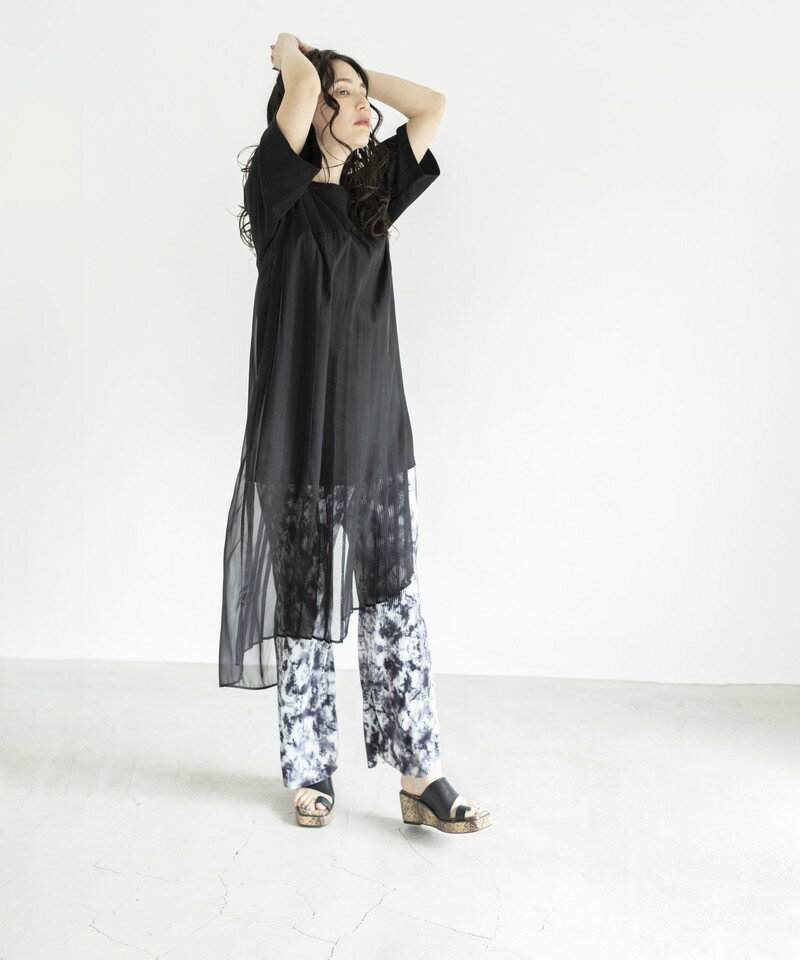 さらりと快適な着心地のインナーカットソーとシフォンの組み合わせて、モード印象でインナーとしてもシーズンレスで大活躍。