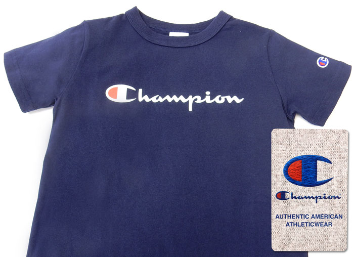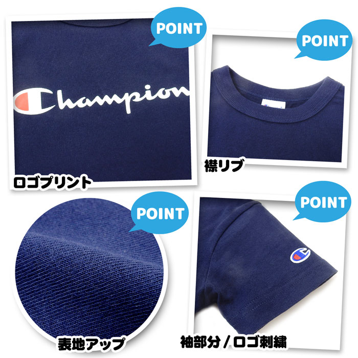 【送料無料】男児 ジュニア 本体綿100% Champion/チャンピオン 半袖 Tシャツ ロゴプリント ロゴ刺繍 クルーネック 子供服 男の子 140cm 150cm 160cm td-0104f-nv【メール便対応】