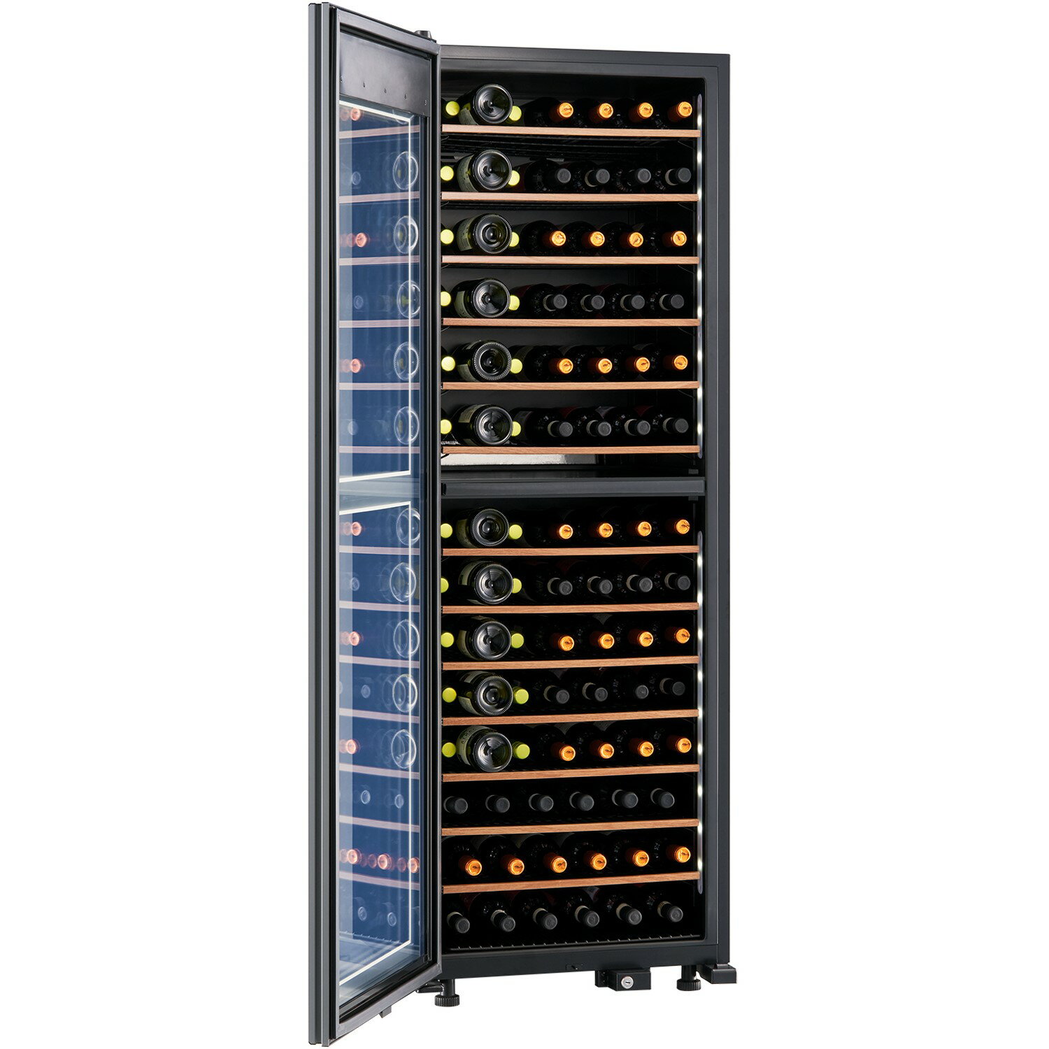 95本収納 左開き 氷温 2温度管理式のワイン&日本酒セラ- LX95DM2Z-LH-Wメーカー名さくら製作所 サイズ幅600mm 奥行600mm 高さ1734mmスペック収納本数:95本 設定温度:上室-2~22℃/下室0〜22℃扉タイプ:3重ガラス構造(強化ガラス+真空断熱ガラス) 扉開き:左開き 棚:ワイヤー棚+縦置き棚+ワンステップシェルフ 鍵:あり 有効内容積:312L庫内灯:LED灯(白色/電球色) 電動機の定格消費電力:174/198W 年間消費電力量:286/307kWh/年 製品重量:102kg 保証期間:冷媒循環回路3ヵ年 本体1ヵ年 扉ガラス他 6ヵ月 商品説明 マイナス2℃の氷温®管理ができ、さらに、90本以上の収納性、2温度管理タイプのシリーズとなっています。
