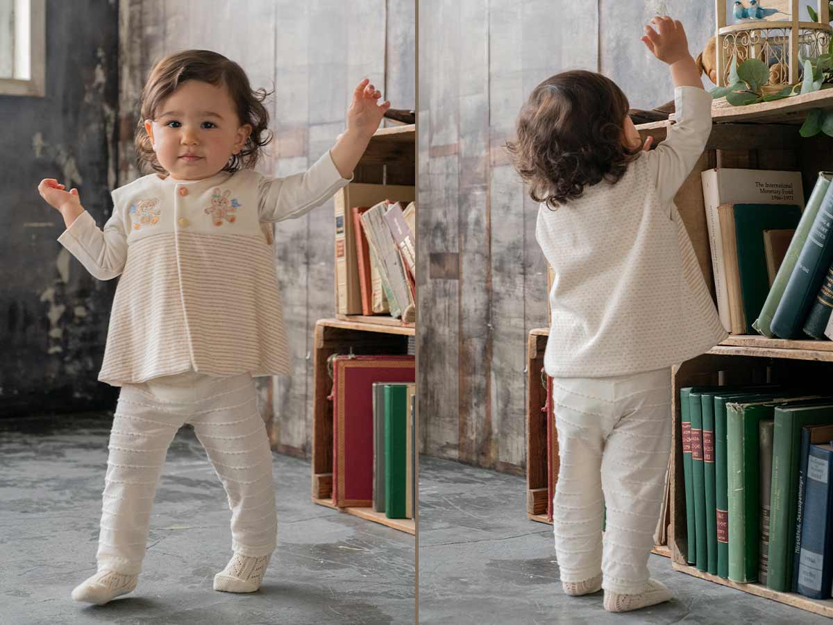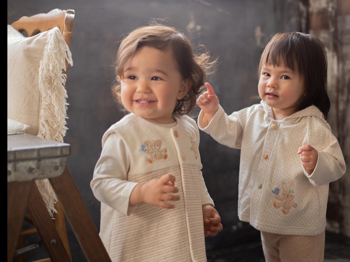 胸元にはくまとうさぎのモチーフがお子様を見守ります。